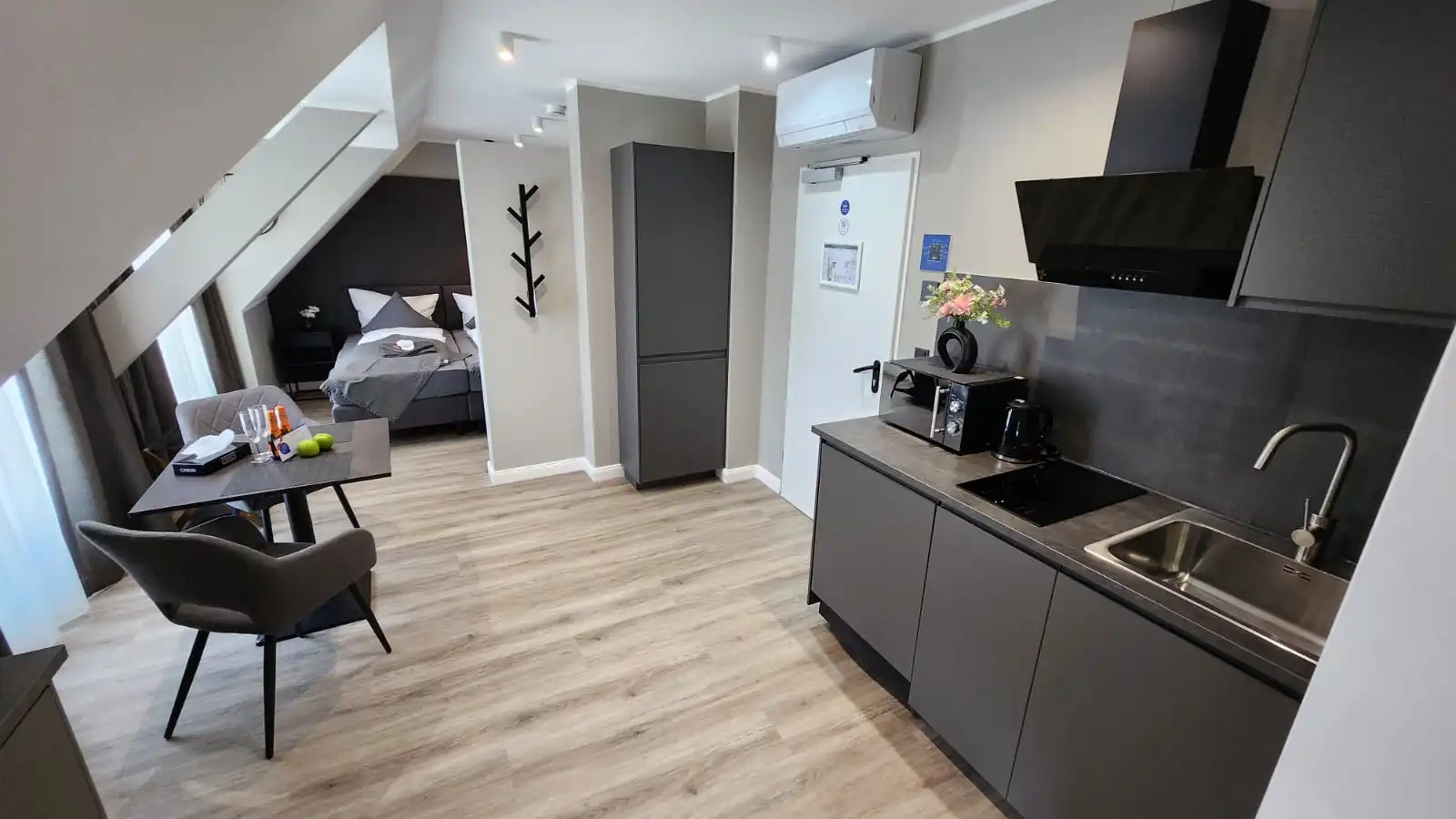 Nein, wir bieten kein Frühstück an unseren Standorten an. Dafür hat jedes Zimmer/Apartment eine Küche mit Kühlschrank (Ausnahme Einzelzimmer in Viersen und Moers, die explizit ohne Küche angeboten werden).